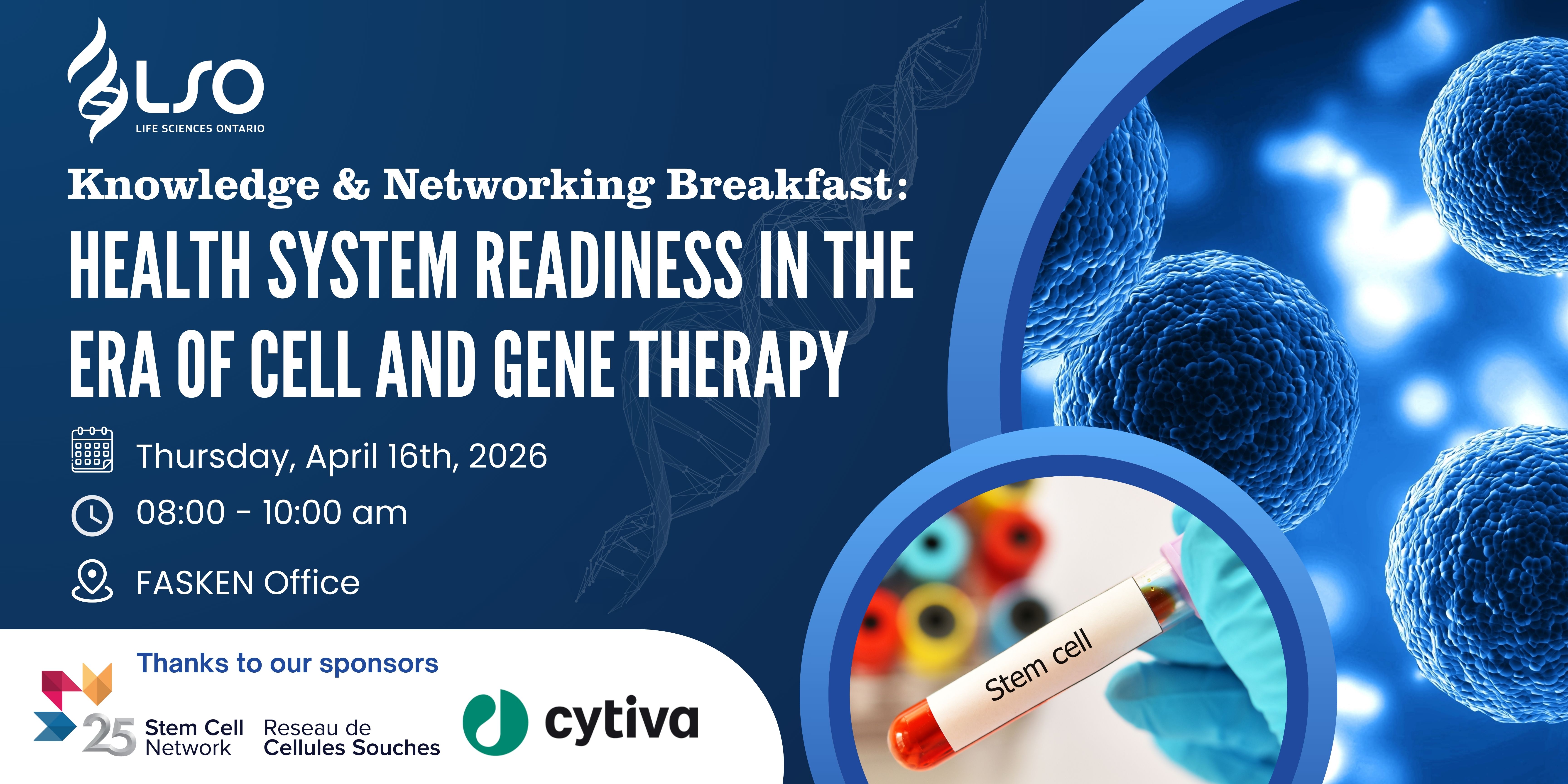 Join us for our April LSO Knowledge & Networking Breakfast, bringing together leaders from across the life sciences ecosystem to discuss the future of advanced therapies in Canada.